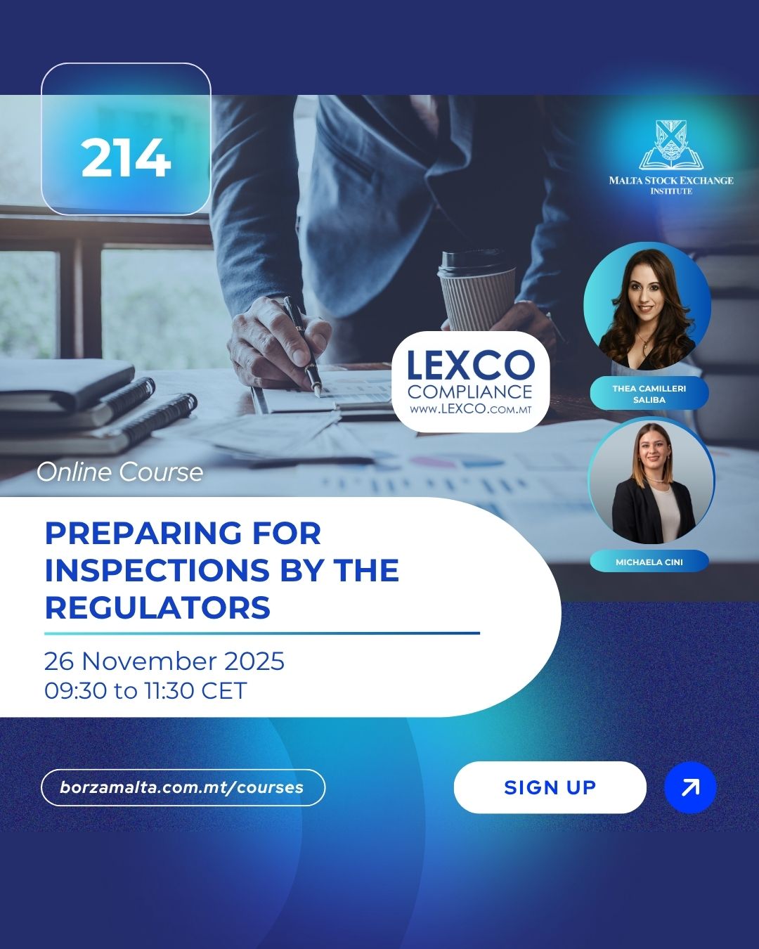 The FIAU and the MFSA can and are given authority by law to perform inspections on subject persons and licensed entities. This course is aimed at Designated Non-Financial Business Providers and Corporate Service Providers and will give insight on the different supervisory engagements carried out.
